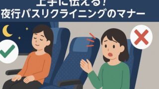 夜行バスは便利で経済的な移動手段ですが、座席リクライニングをめぐるマナー問題は多くの人が経験する悩みのひとつです。快適さを求めるあまり周囲への配慮を欠くと、思わぬトラブルに発展することもあります。本記事では、夜行バスを安心して利用するために...